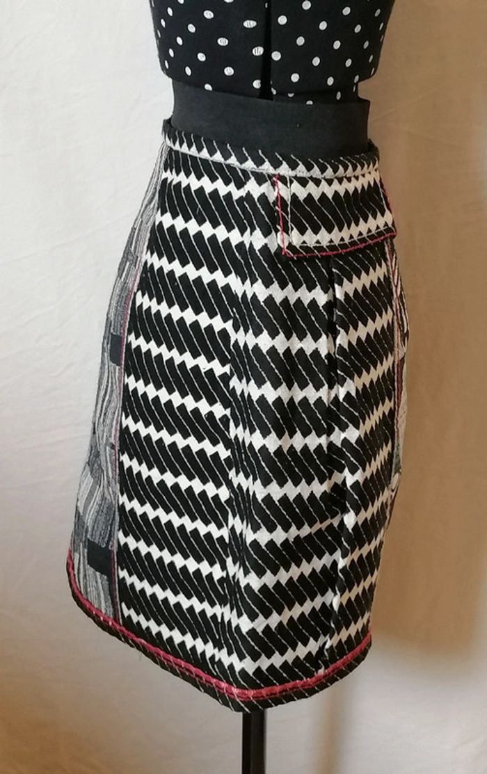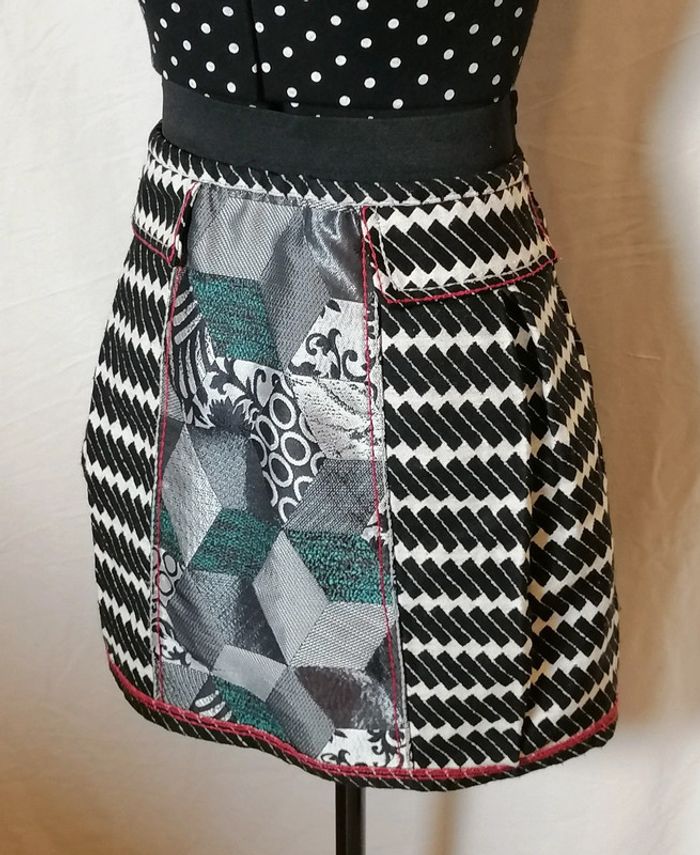 Jupe courte patchwork écusson cuir argenté noir blanc rouge taille 36 Desigual - photo numéro 7