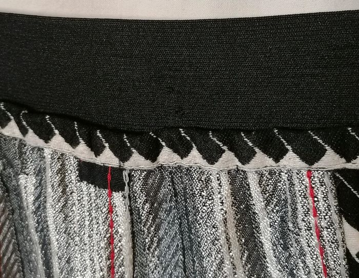 Adorable jupe courte à motif patchwork et écusson en cuir Fermeture zip invisible Couleur noir, blanc, argenté et touches de rouge 2 poches latérales factices Doublure grise à motifs Taille élastique, tissu épais non extensible Taille 36 ou S Matières : Coton, Polyester et Cuir (l'étiquette n'indique pas les pourcentages) Doublure : 100% Polyester Mesures à plat : Longueur : 47 cm Taille : 35 cm (élastique) Hanches : 50 cm Prix d'achat : 120€ 🌟 Portée quelques fois mais en très bon état général 🌟 🔹Tout petits défauts très peu visibles sur le motif et sur l'élastique (2 dernières photos) 🎁🎁🎁 Promo 1€ offert (en article) par tranche de 5€, voir ma description "à propos" pour lire les détails 🎁🎁🎁 #rayures #patchwork #desigual #chic #argenté #rouge #noir #blanc #jupecourte #minijupe #jupechic #printemps #classique #automne #femme #jupe #bizs33 #bizs33taille36 #bizs33jupe #bizs33tailles P18N16