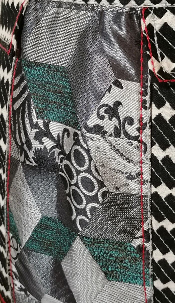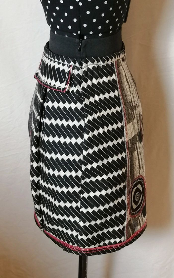 Jupe courte patchwork écusson cuir argenté noir blanc rouge taille 36 Desigual - photo numéro 12