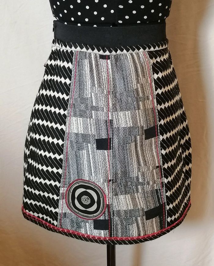 Jupe courte patchwork écusson cuir argenté noir blanc rouge taille 36 Desigual - photo numéro 2