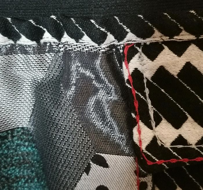 Jupe courte patchwork écusson cuir argenté noir blanc rouge taille 36 Desigual - photo numéro 13