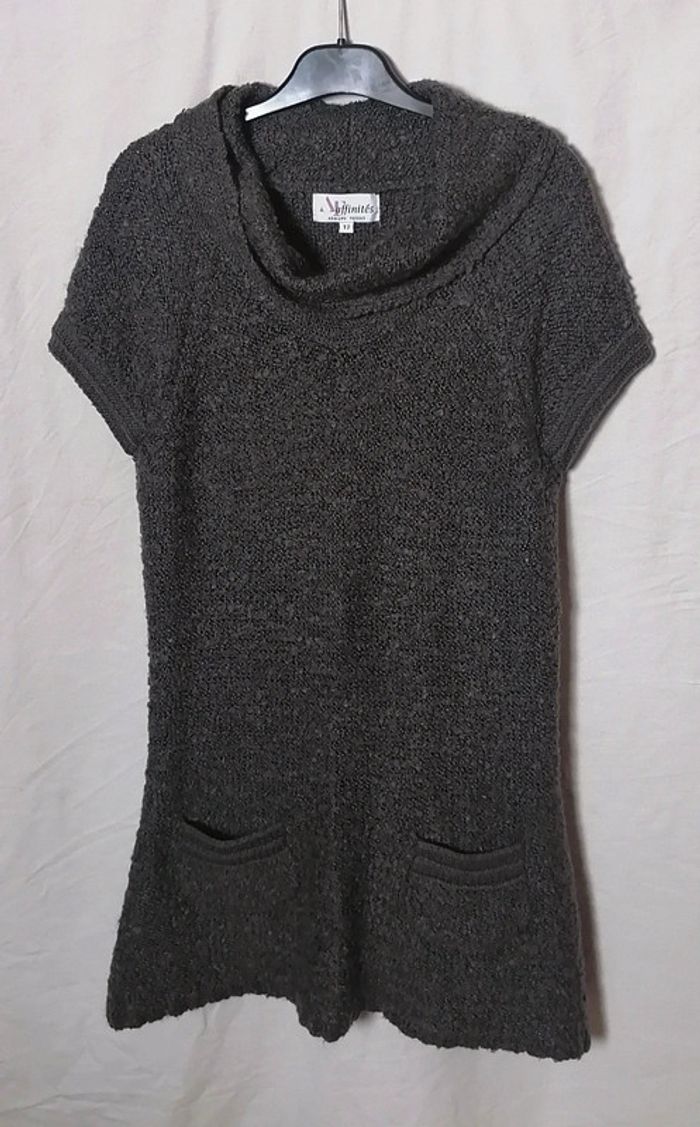 Robe tunique pull marron taupe mohair laine taille 2 ou M Armand Thiery Affinités - photo numéro 1