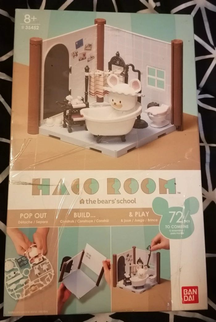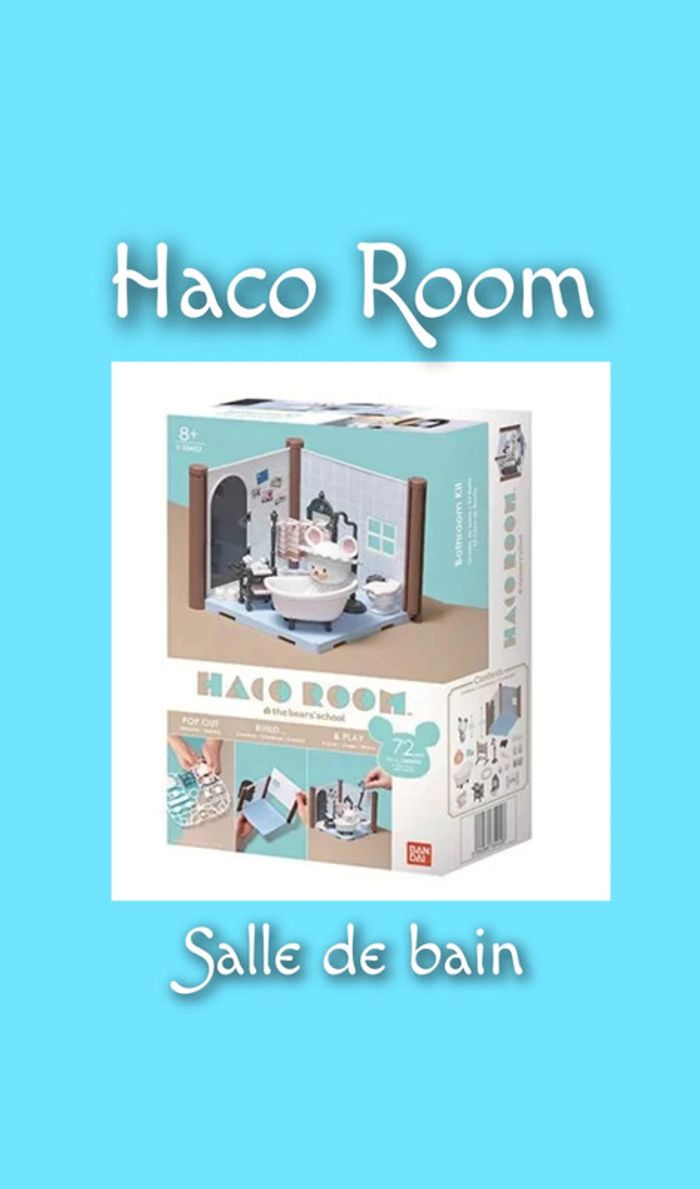 Entrez dans l’univers adorable et Japonisant de Haco Room. Alliant deux concepts, la construction et le jeu, Haco Room va vous divertir pendant des heures. À vous de jouer en montant chaque pièce de la maison pour après pouvoir y installer vos personnages et vous créer les plus belles histoires. Ce kit comprend 72 pièces pour créer la salle de bains. La figurine exclusive de David est incluse. Vous aussi vous voudriez bien vous prélasser des heures dans ce lieu si mignon. Haco Room, un mini univers à construire et à collectionner afin d'agrandir votre univers de jeu. Détachez chaque élément de son support et assemblez-les facilement. Marque : Bandai Dimensions : L20xH10xP30 Poids : 0.4kg À partir de 8 ans 🌟 Neuf sous blister 🌟 🔹La boîte est re-scotchée #bandai #hacoroom #jeu #construction #salledebain #bizs33enfants #bizs33