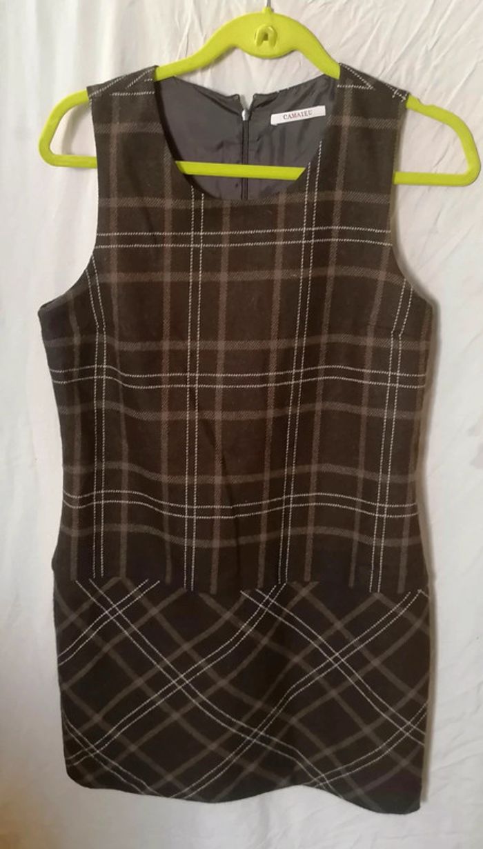 Robe courte hiver carreaux marron blanc taille XL Camaïeu - photo numéro 1
