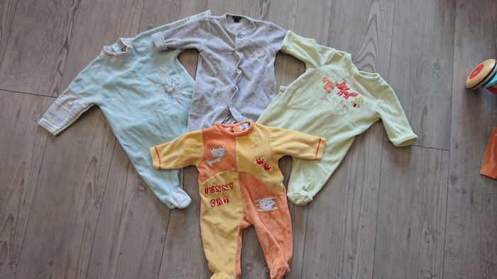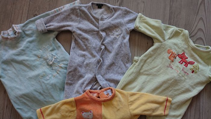 Lots de pijama en velours tout doux Couleur mixte Idéal pour jumeaux jumelles ou pour avoir un lot . Possibilité de prendre a l'unité si besoin. J'ai également d'autres pijama en couleur fille. Réduction possible sur lot car j'ai beaucoup d'autres articles bébé