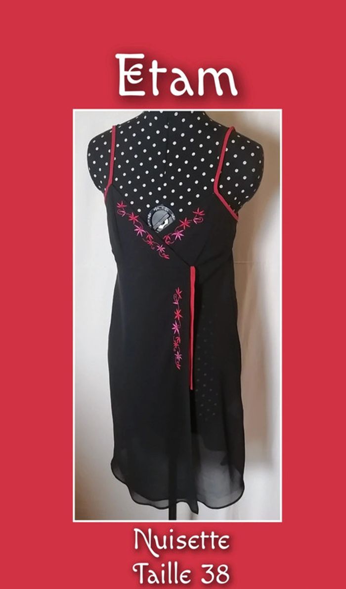 Nuisette robe de nuit noir rouge rose broderie transparent taille 38 Etam - photo numéro 1
