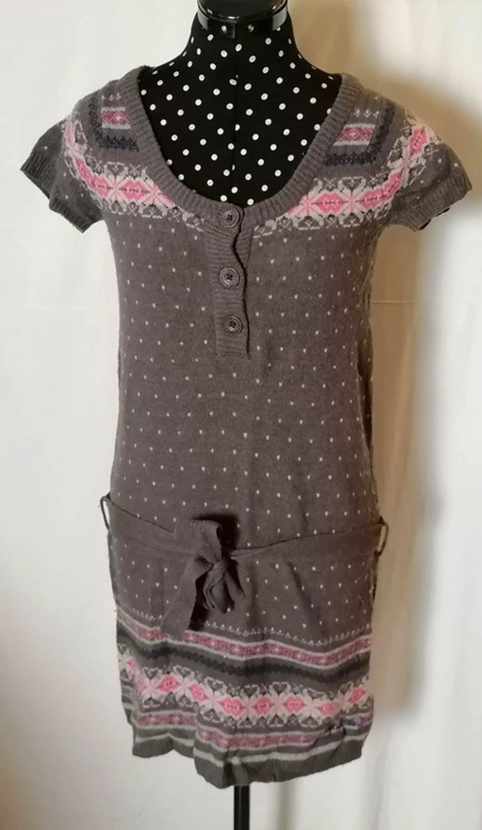 Robe pull mailles fines laine hiver marron rose blanc taille M Portobello by Pepe Jeans - photo numéro 1