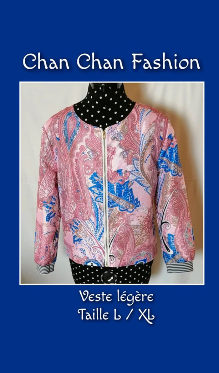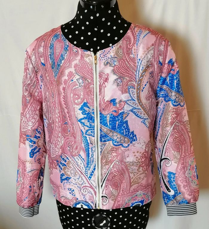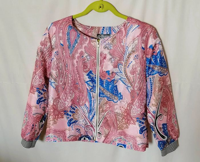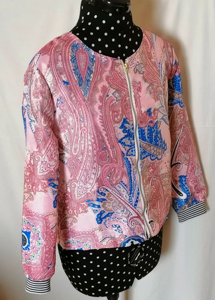 Veste courte bomber rosr bleu blanc cachemire taille XL Chan Chan Fashion - photo numéro 1
