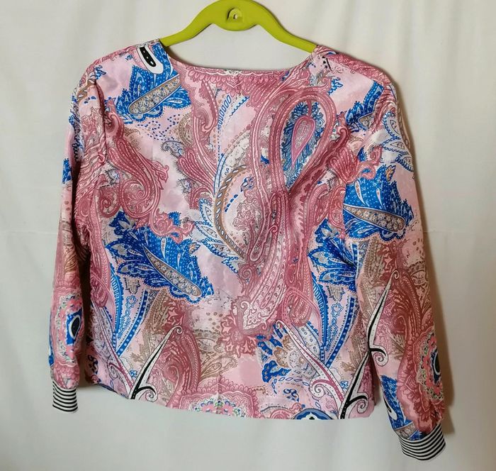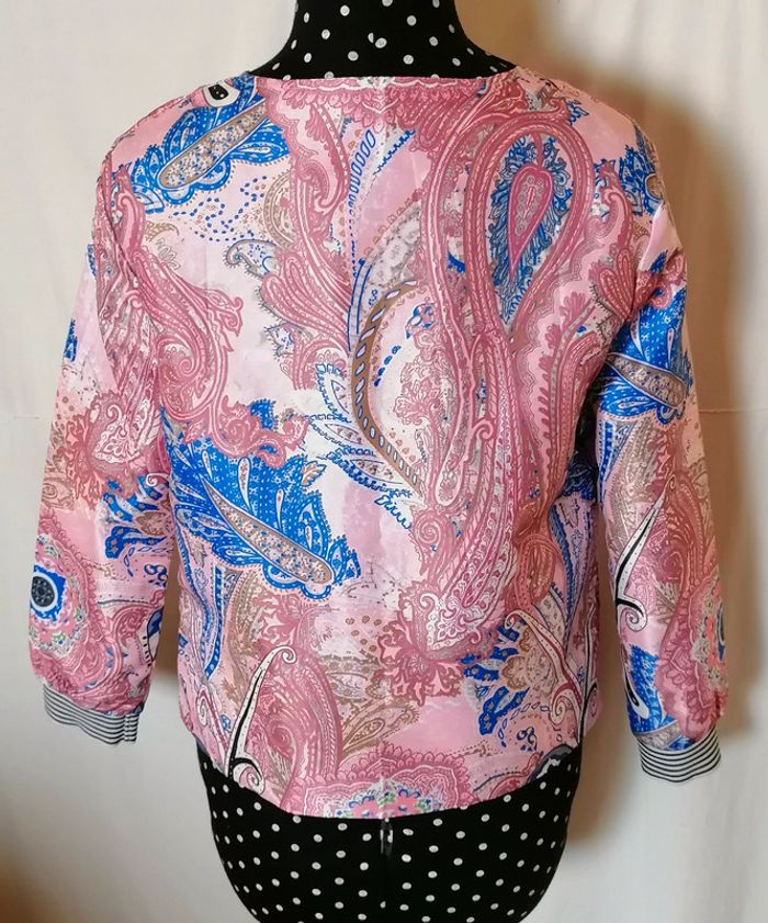 Veste courte bomber rosr bleu blanc cachemire taille XL Chan Chan Fashion - photo numéro 3