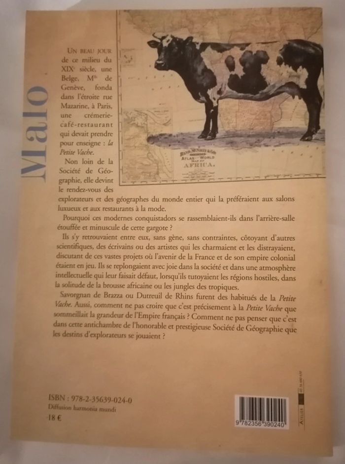 Un beau jour de ce milieu du XIXe siècle, une Belge, Mlle de Genève, fonda dans l'étroite rue Mazarine, à Paris, une crémerie-café-restaurant qui devait prendre pour enseigne : la Petite Vache. Non loin de la Société de Géographie, elle devint le rendez-vous des explorateurs et des géographes du monde entier qui la préféraient aux salons luxueux et aux restaurants à la mode. Pourquoi ces modernes conquistadors se rassemblaient-ils dans l'arrière-salle étouffée et minuscule de cette gargote ? Ils s'y retrouvaient entre eux, sans gène, sans contraintes, côtoyant d'autres scientifiques, des écrivains ou des artistes qui les charmaient et les distrayaient, discutant de ces vastes projets où l'avenir de la France et de son empire colonial étaient en jeu. Ils se replongaient avec joie dans la société et dans une atmosphère intellectuelle qui leur faisait défaut, lorsqu'ils tutoyaient les régions hostiles, dans la solitude de la brousse africaine ou les jungles des tropiques. Savorgnan de Brazza ou Dutreuil de Rhins furent des habitués de la Petite Vache. Aussi, comment ne pas croire que c'est précisément à la Petite Vache que sommeillait la grandeur de l'Empire français ? Comment ne pas penser que c'est dans cette antichambre de l'honorable et prestigieuse Société de Géographie que les destins d'explorateurs se jouaient ? Auteur : Henri Malo Editeur : Elytis Eds Date de parution : septembre 2009 Collection : Grands Voyageurs Format : 17cm x 24cm Poids : 0,3100kg 176 pages Prix d'achat : 18€ 🌟 Parfait état, neuf sans étiquette 🌟 #bizs33 #bizs33livre #bizs33loisirs #petitevache #henrimalo #histoire #colonie #colonisation #livre #vintedgift