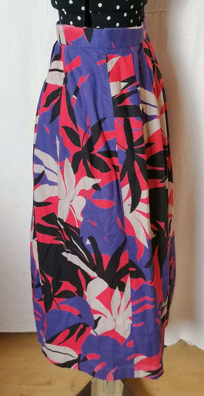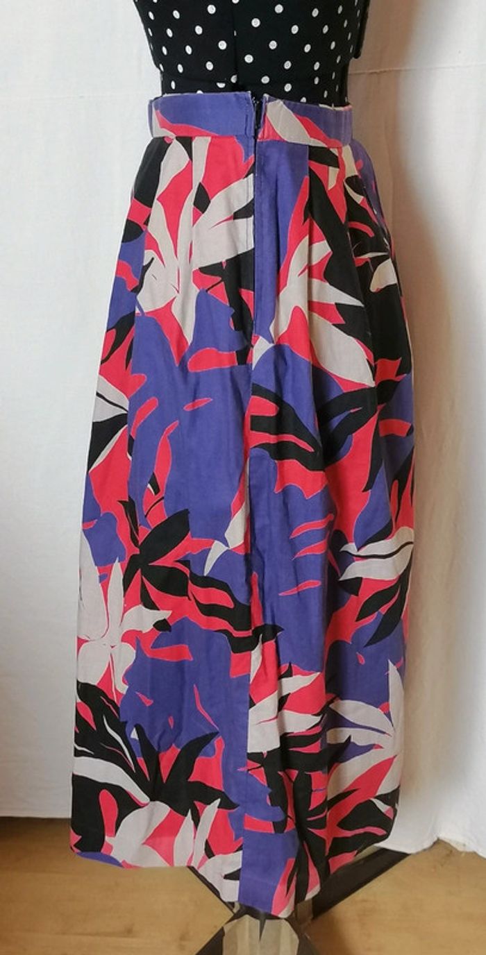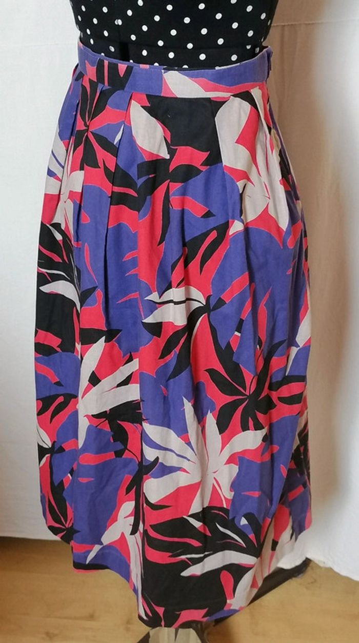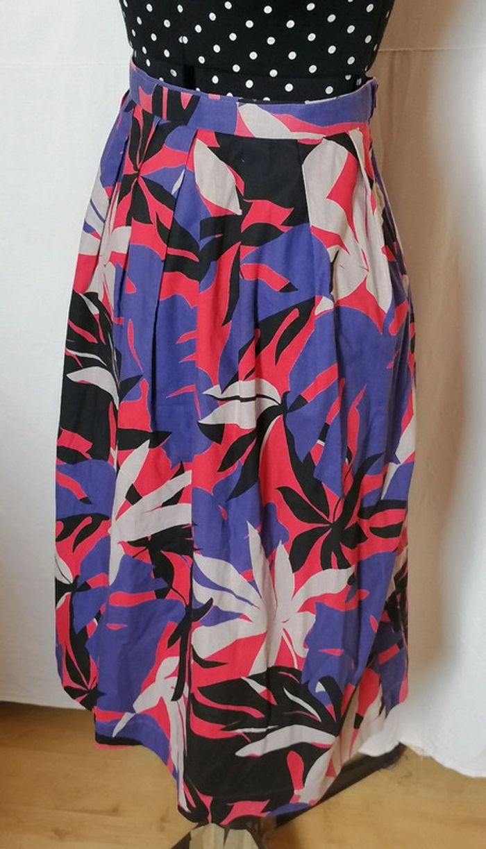 Jupe mi-longue motif tropical violet rouge noir gris taille S fait main Vintage - photo numéro 5