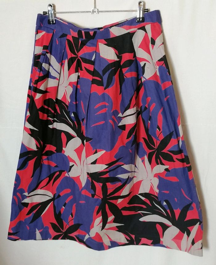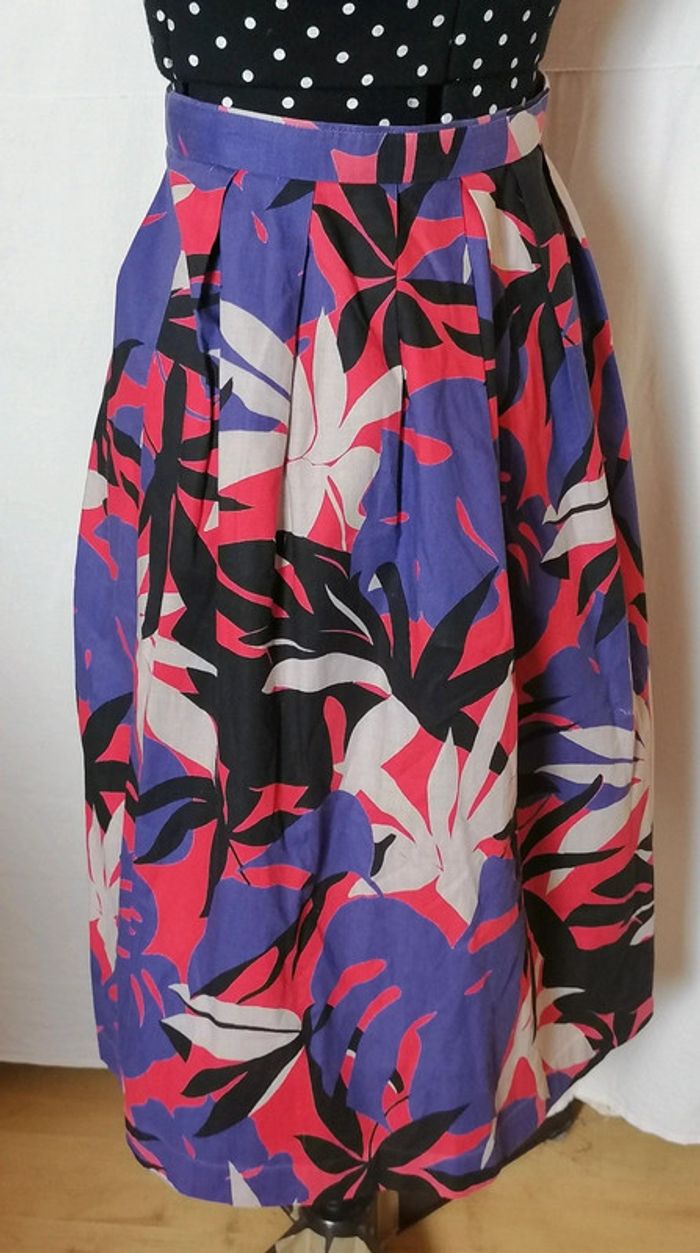 Jupe mi-longue motif tropical violet rouge noir gris taille S fait main Vintage - photo numéro 1