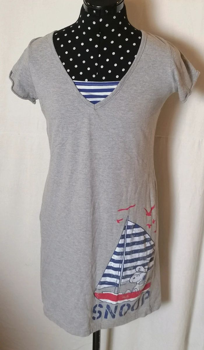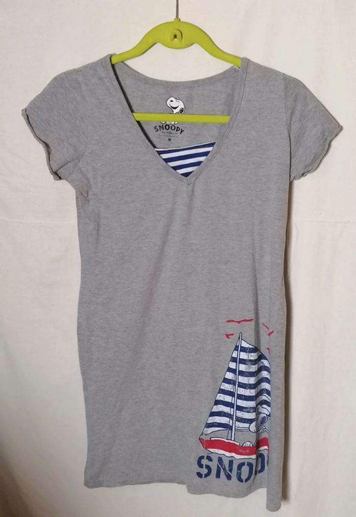 Nuisette / chemise de nuit gris bleu blanc rouge Snoopy by Schulz - photo numéro 1