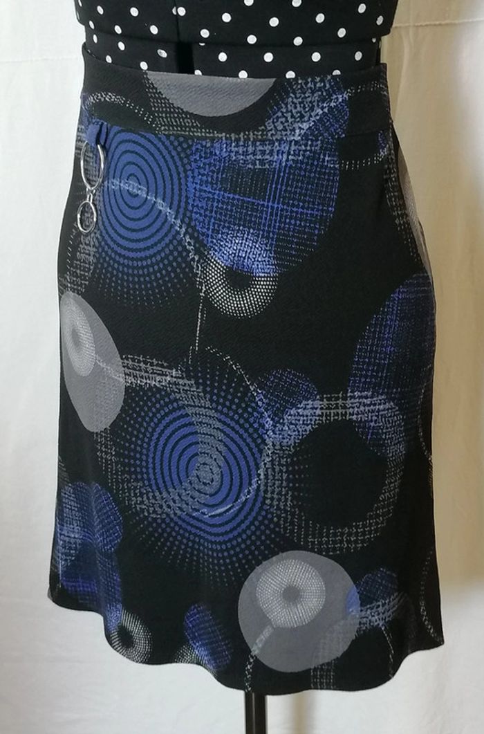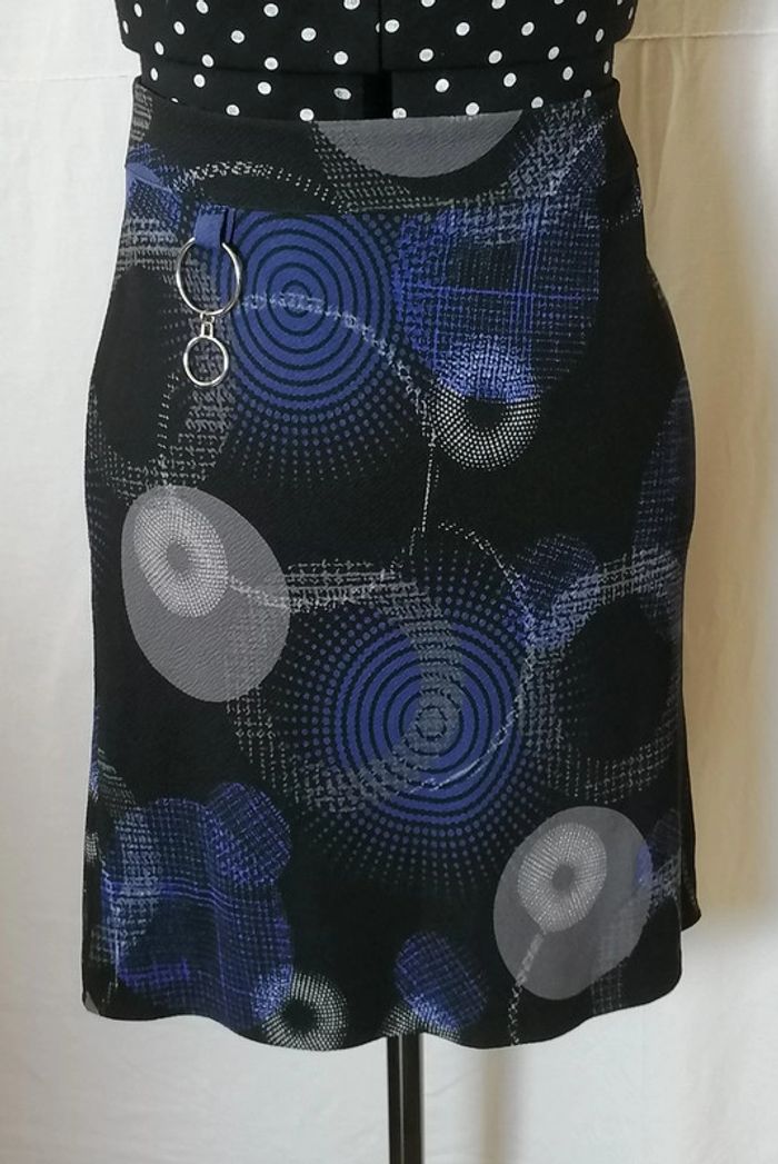 Jupe courte motifs géométriques bleu gris noir taille 36 Armand Thiery - photo numéro 5