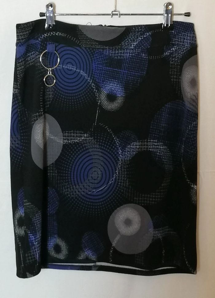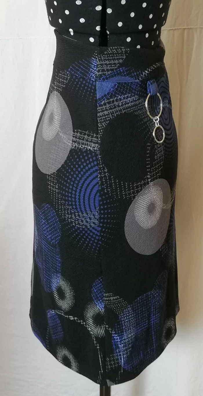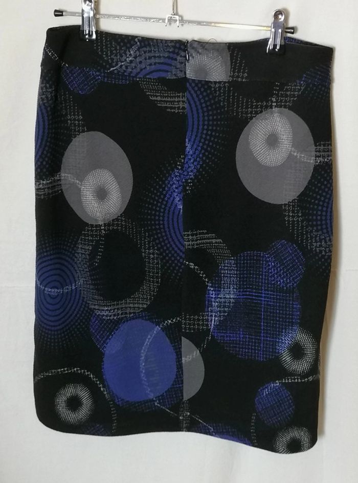 Jupe courte motifs géométriques bleu gris noir taille 36 Armand Thiery - photo numéro 11