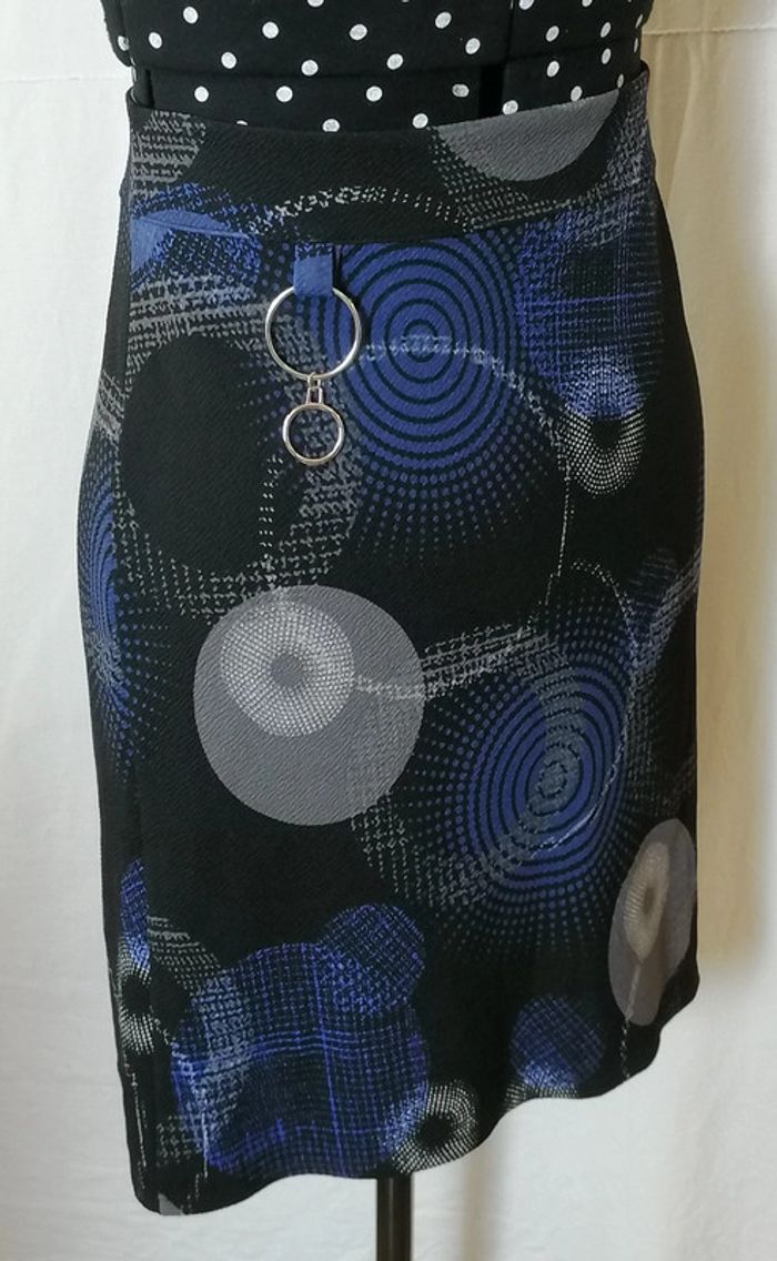 Jupe courte motifs géométriques bleu gris noir taille 36 Armand Thiery - photo numéro 12