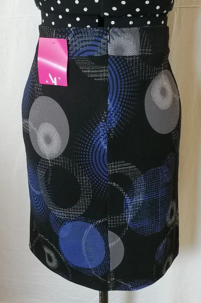 Jupe courte motifs géométriques bleu gris noir taille 36 Armand Thiery - photo numéro 8