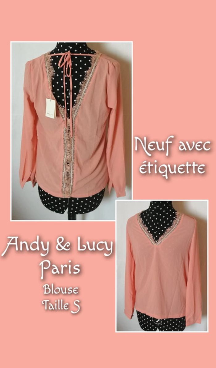 Blouse décolté dentelle saumon / abricot taille s Andy & Lucy - photo numéro 1