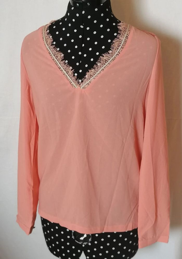 Blouse décolté dentelle saumon / abricot taille s Andy & Lucy - photo numéro 8