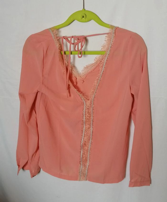 Blouse décolté dentelle saumon / abricot taille s Andy & Lucy - photo numéro 3