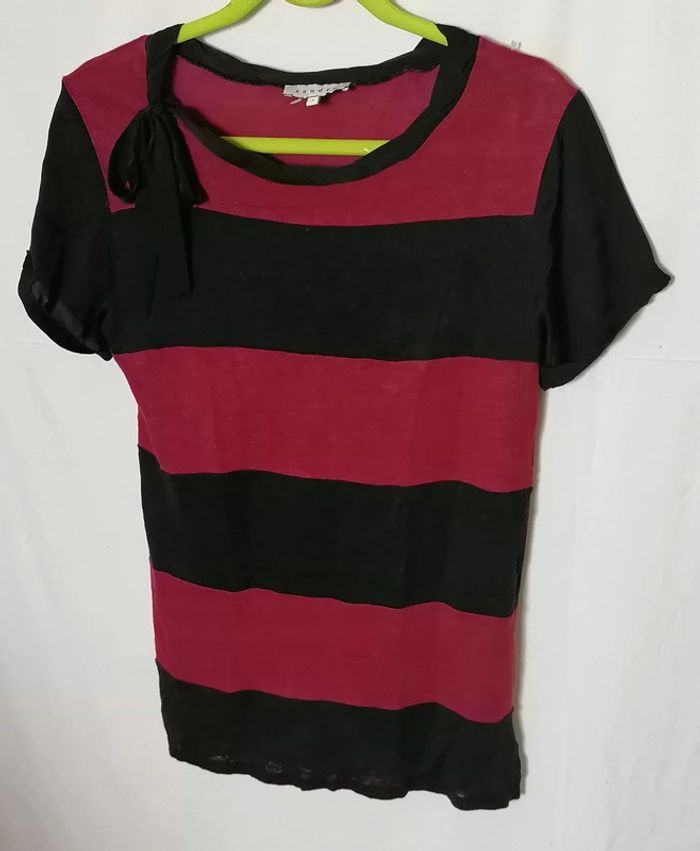 Top / tee-shirt rayures rouge noir taille 2 Sandro - photo numéro 1