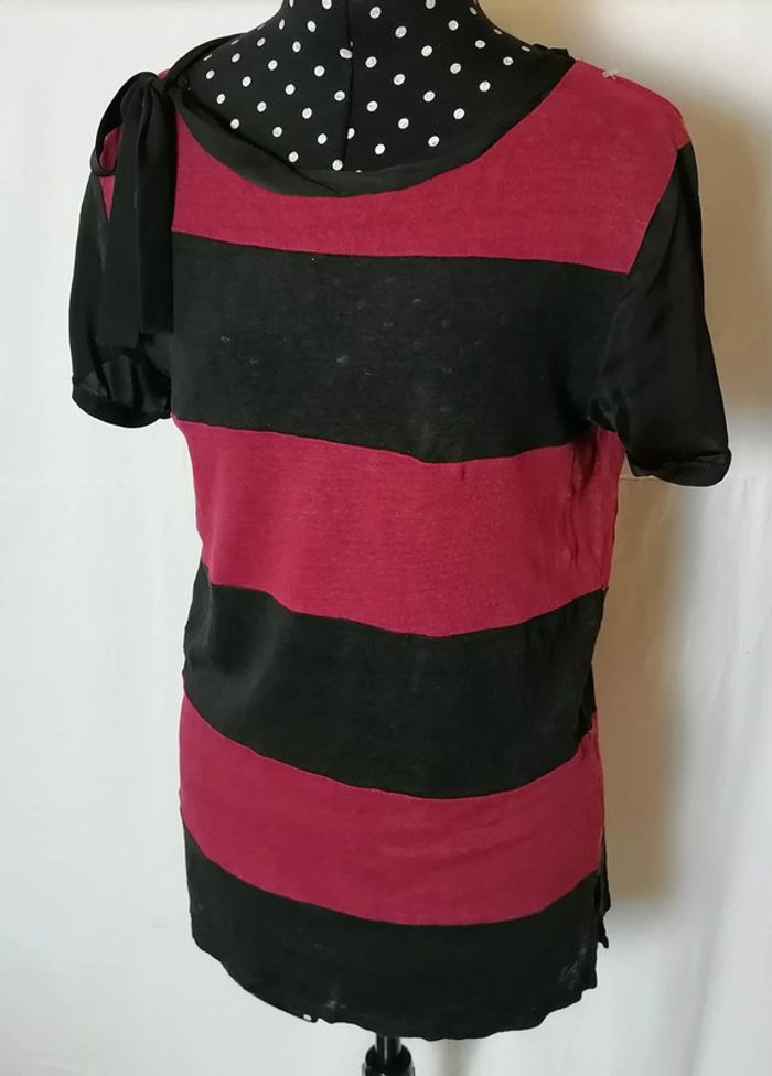 Top / tee-shirt rayures rouge noir taille 2 Sandro - photo numéro 6