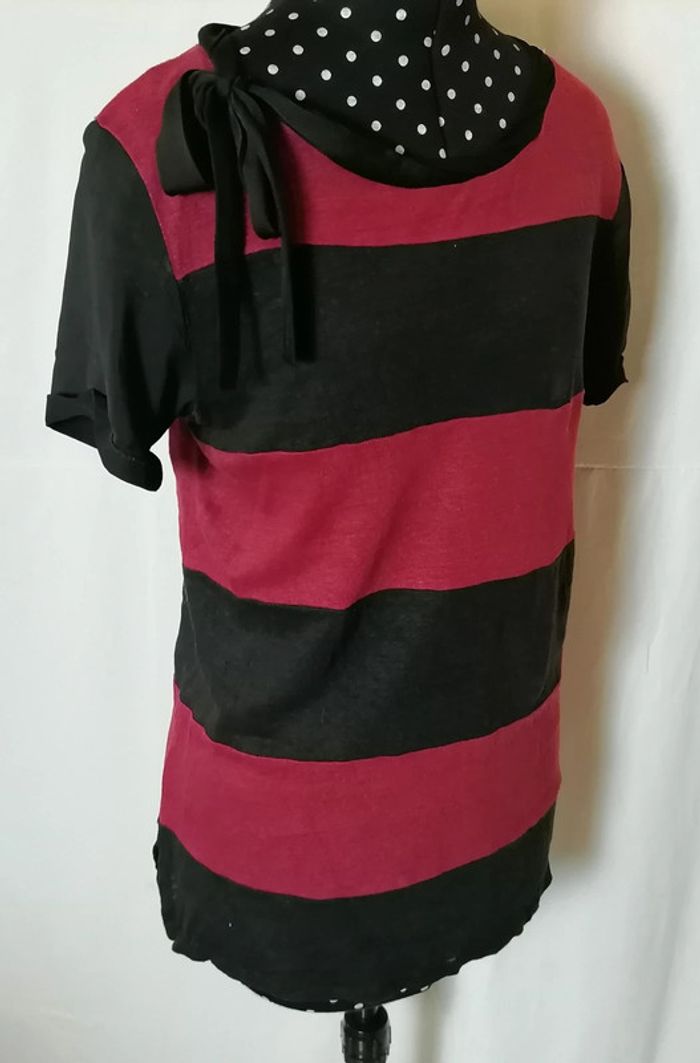 Top / tee-shirt rayures rouge noir taille 2 Sandro - photo numéro 9