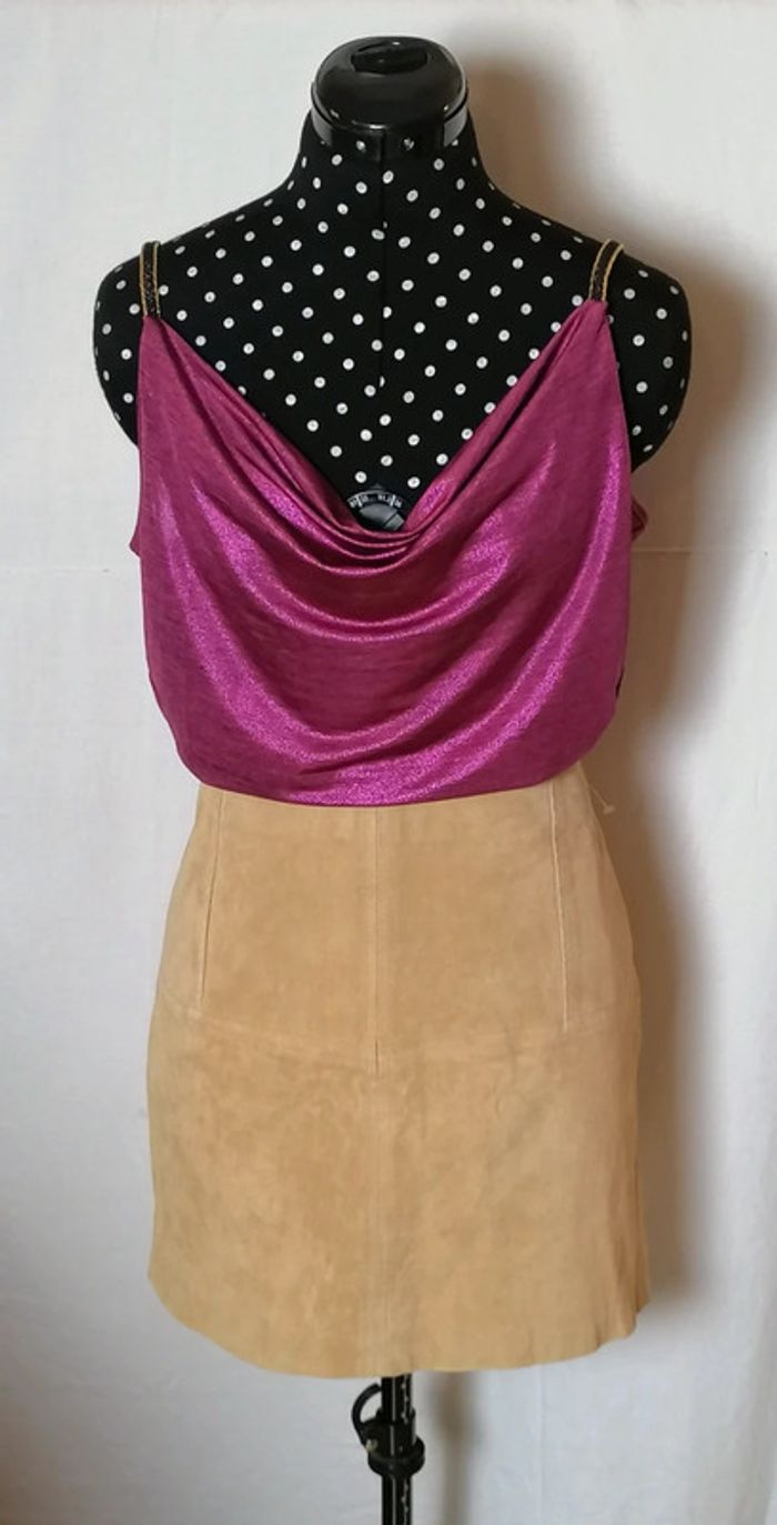 Mini-jupe suédine cuir véritable camel clair taille 42 Asos - photo numéro 7