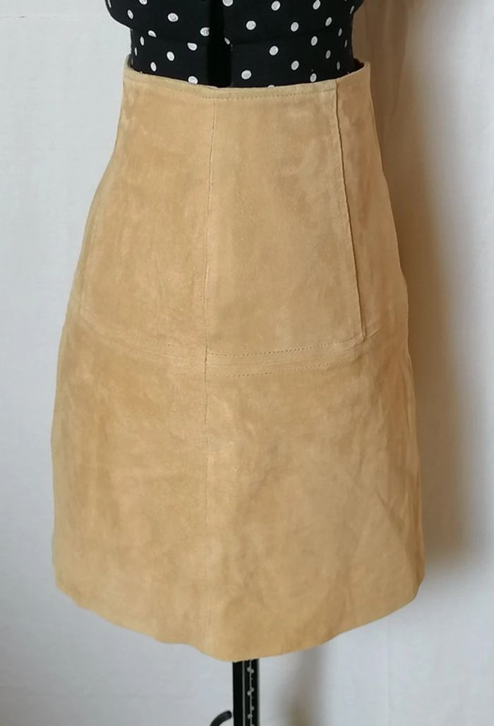 Mini-jupe suédine cuir véritable camel clair taille 42 Asos - photo numéro 3