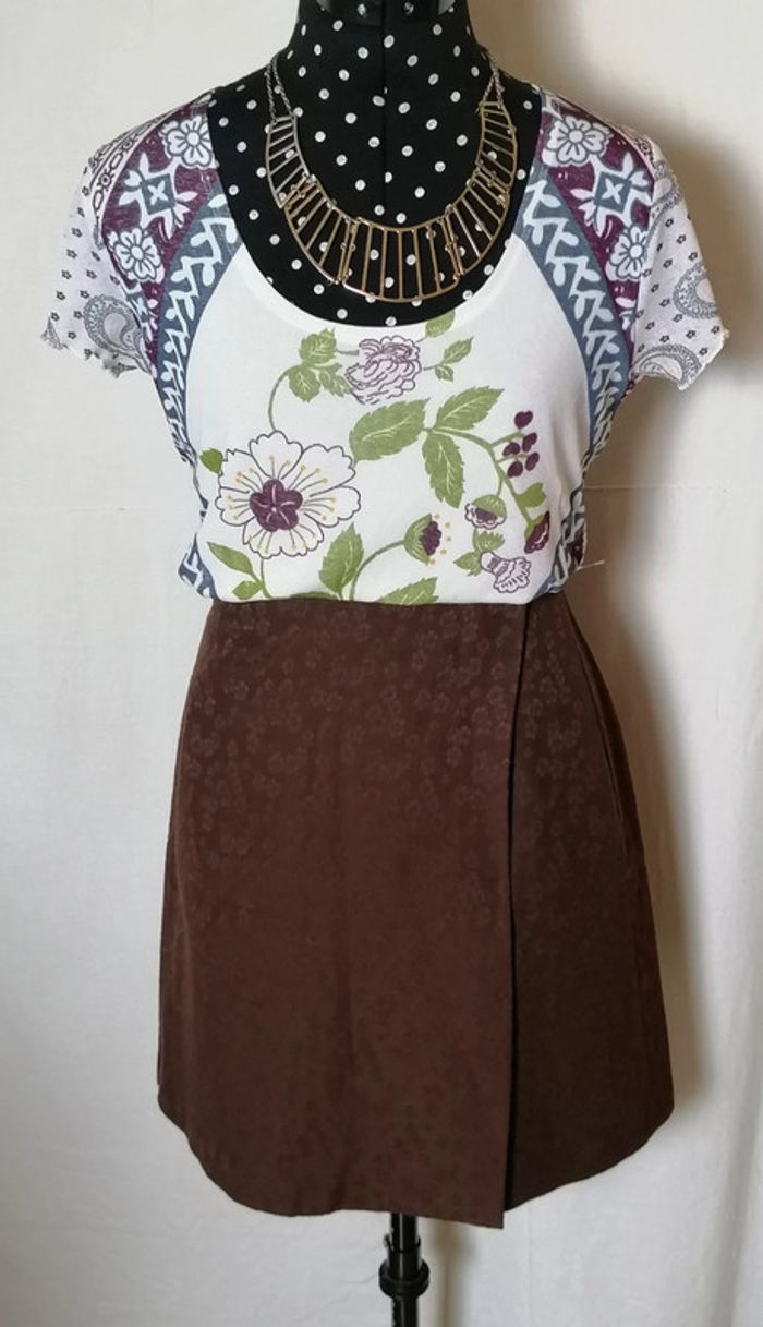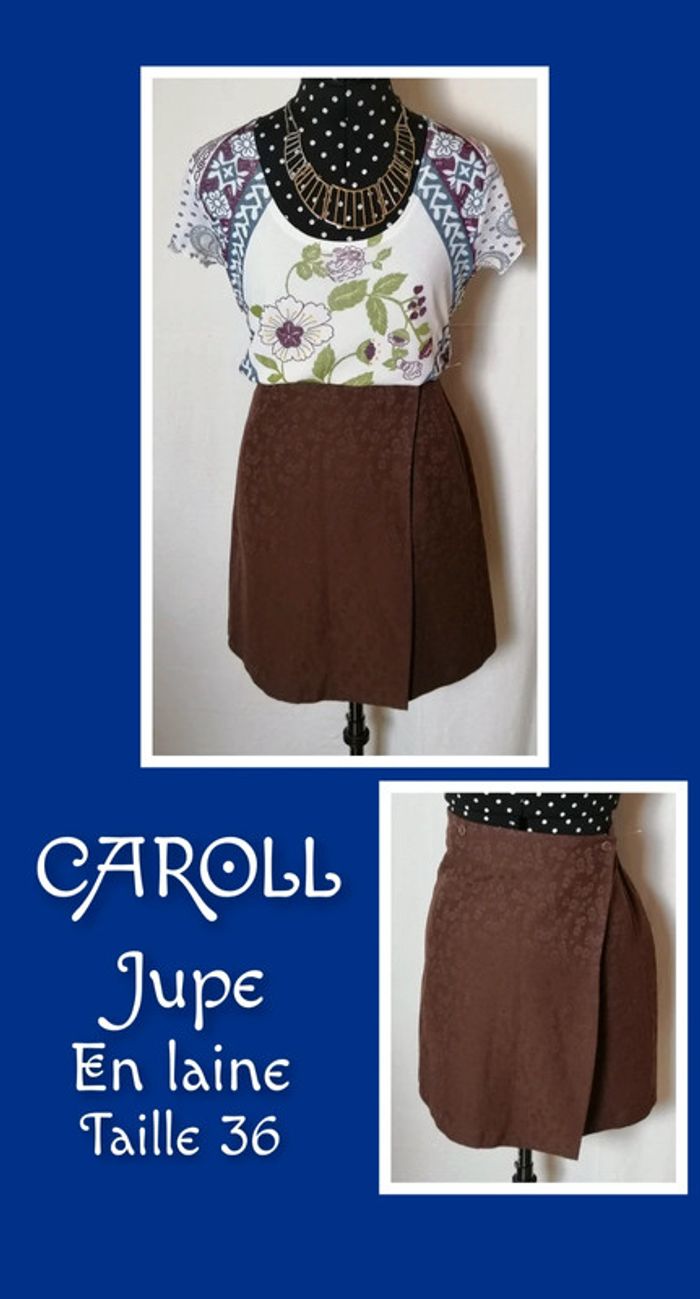 Jupe courte portefeuille fleurs laine marron taille 36 Caroll - photo numéro 1