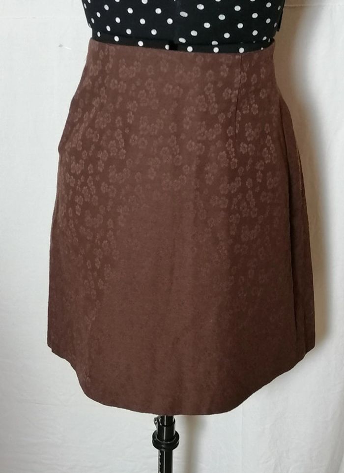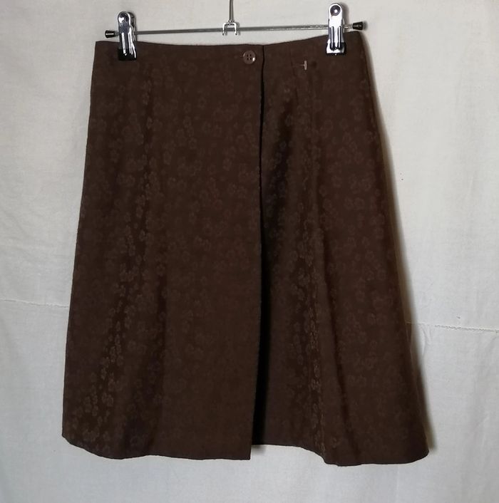 Jupe courte portefeuille fleurs laine marron taille 36 Caroll