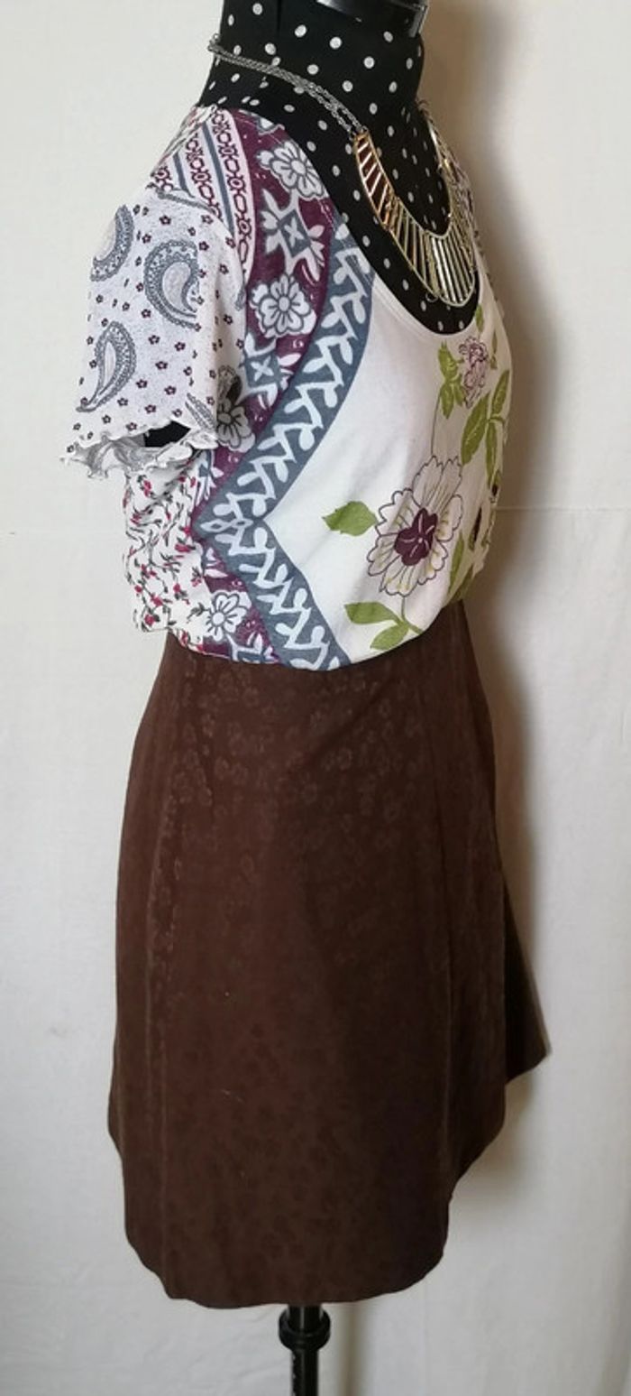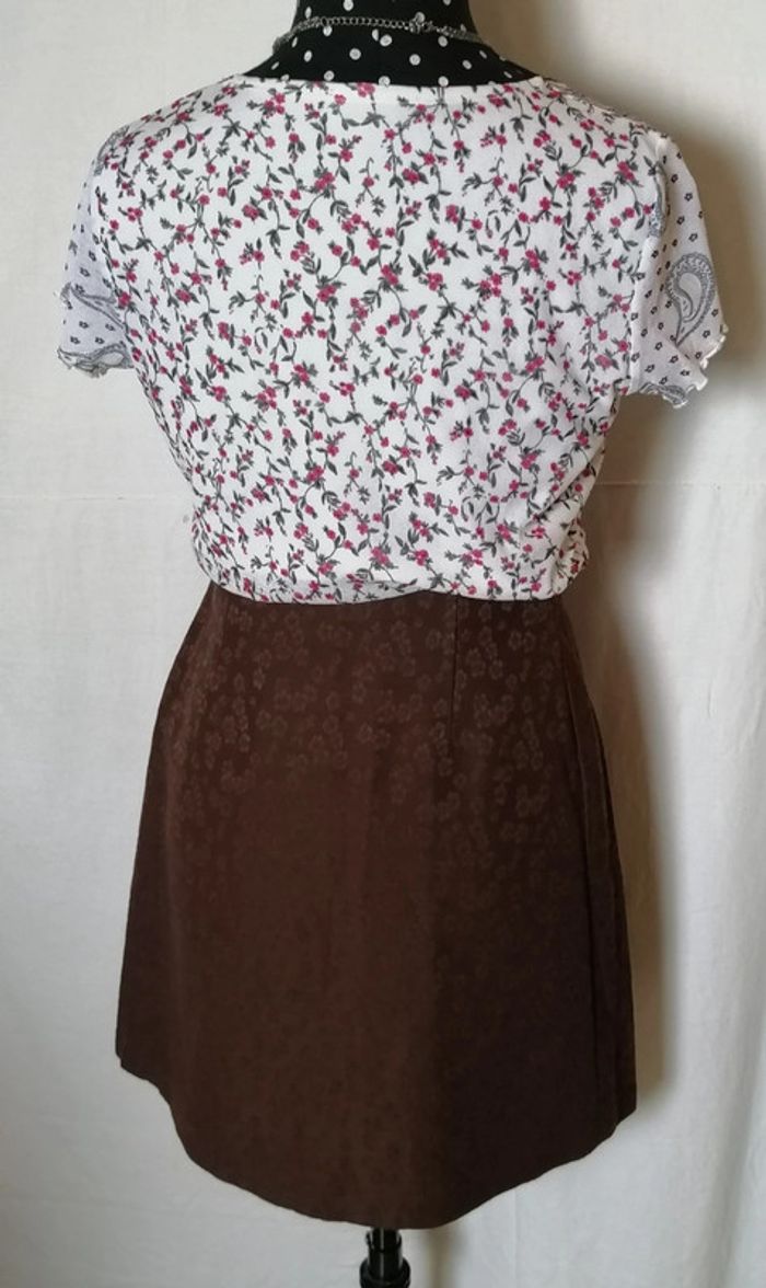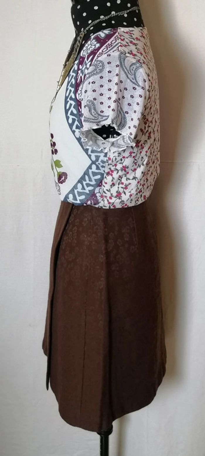 Jupe courte portefeuille fleurs laine marron taille 36 Caroll - photo numéro 6