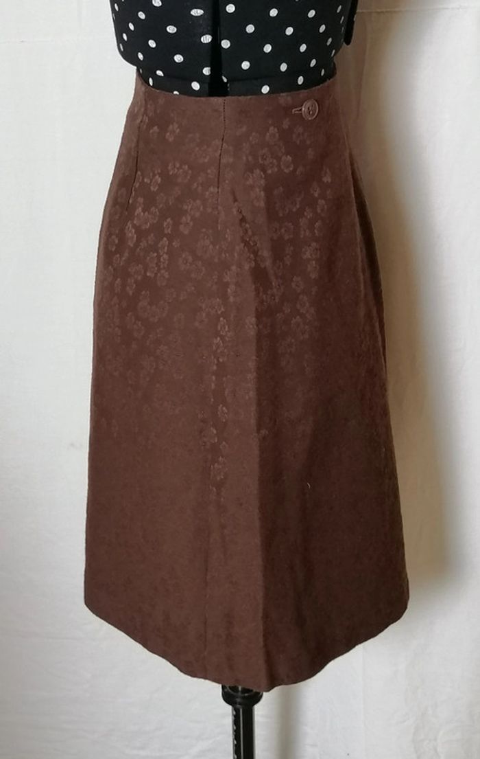 Jupe courte portefeuille fleurs laine marron taille 36 Caroll - photo numéro 7