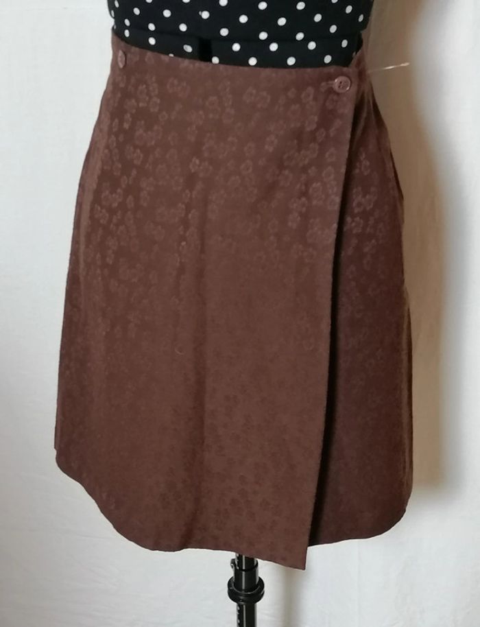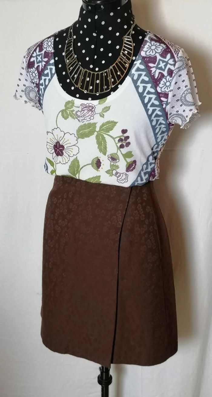 Jupe courte portefeuille fleurs laine marron taille 36 Caroll - photo numéro 5