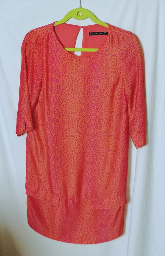 Robe courte fluide corail motif léopard taille S Zara basic - photo numéro 1