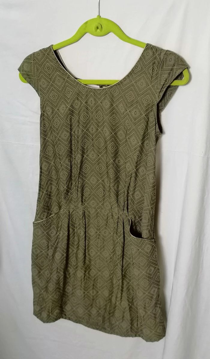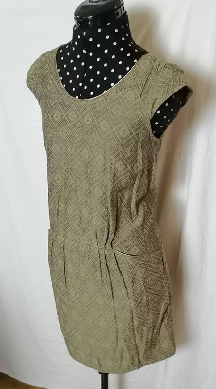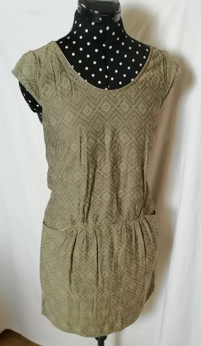 Jolie robe chic et feminine à motifs géométriques Manches courtes, col rond, poches latérales Couleurs kaki et doré Pas de fermeture, s'enfile simplement, juste un petit bouton pression dans le dos Tissu non strech, taille non élastique Pas de doublure, tissu opaque Kookaï Taille 36 Matières : 51% Polyester 49% Viscose Mesures à plat : Longueur : 83 cm Aisselles : 42 cm Taille : 40 cm Prix d'achat : 85€ 🌟 Portée une ou 2 fois, très bon état général 🌟 🎁🎁🎁 Promo 1€ offert (en article) par tranche de 5€, voir ma description "à propos" pour lire les détails 🎁🎁🎁 #dress #mode #femme #robe #casual #été #printemps #kookai #robekookai #robekaki #doré #kaki #robetailles #robetaille36 #taille36 #casual #robechic #robe #bizs33 #bizs33robe #bizs33taille36 #bizs33tailles P10N45
