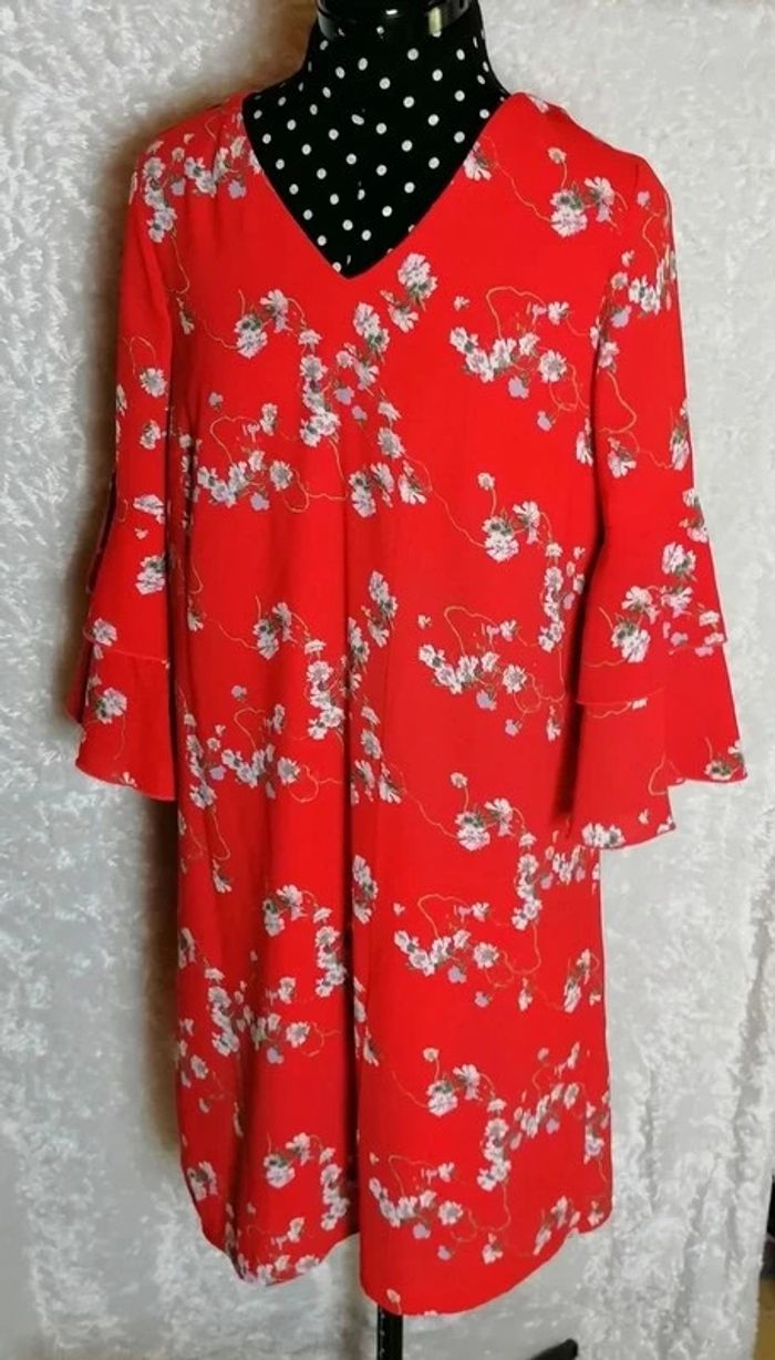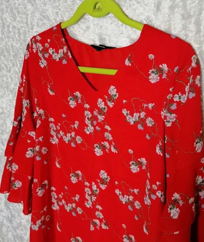Jolie robe à fleurs, forme évasée Manches à volants Col V Fond rouge à petites fleurs blanches et branches vertes Pas de fermeture, s'enfile simplement Doublure uni rouge Tissu non extensible et taille non élastique Vero Moda Taille S Matière : 100% Polyester Mesures à plat : Longueur : 92 cm Aisselles : 46 cm Prix d'achat : 45,99€ 🌟 Jamais portée, neuve 🌟 🎁🎁🎁 Promo 1€ offert (en article) par tranche de 5€, voir ma description "à propos" pour lire les détails 🎁🎁🎁 #dress #mode #femme #rouge #cerisier #casual #veromoda #fleurs #blanc #robetaille36 #robemancheslongues #robetailles #mancheslongues #hiver #robechic #robe #bizs33 #bizs33robe #bizs33tailles #bizs33taille36 (P9N9)