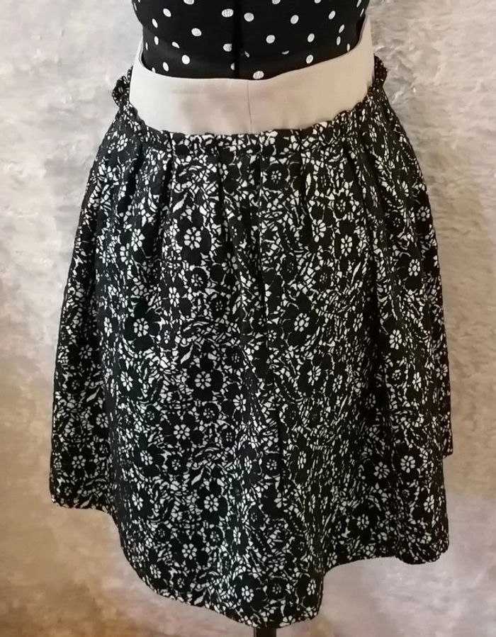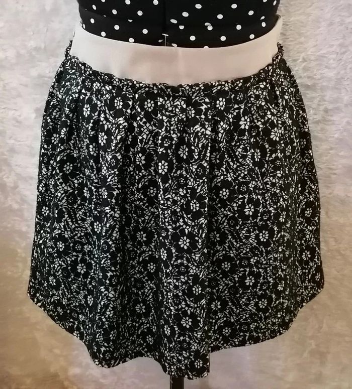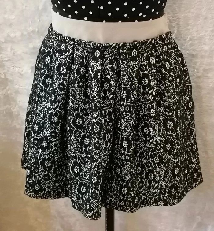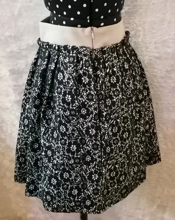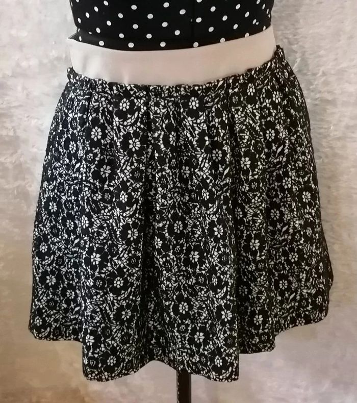 Jolie jupe courte forme patineuse en tissu épais à motif dentelle