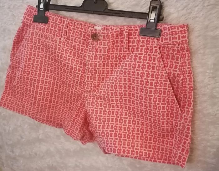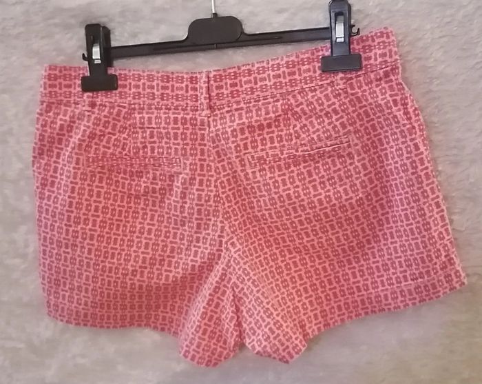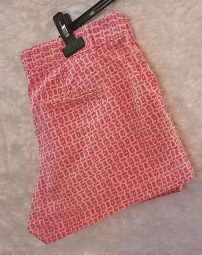 Joli short court GAP Couleur rose clair et motifs rose plus foncé Simple, Intemporel ! Poches latérales devant et derrière Fermeture éclair et bouton Taille non élastique, tissu légèrement stretch Taille 2 Matière : 98% Coton 2% Elasthanne Mesures à plat : Longueur : 28 cm Taille : 39 cm Largeur cuisse : 31 cm 🌟 Porté 2 ou 3 fois mais en très bon état 🌟 🎁🎁🎁 1 article offert par tranche de 5€ d'achat dans mon dressing. Détails dans ma description "à propos" 🎁🎁🎁 #short #rose #gap #gapfemme #bizs33 #bizs33short #bizs33taillem #bizs33taille38 (P7N7)
