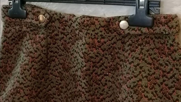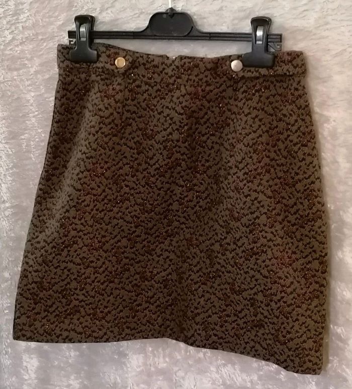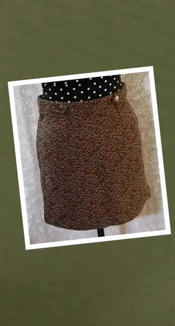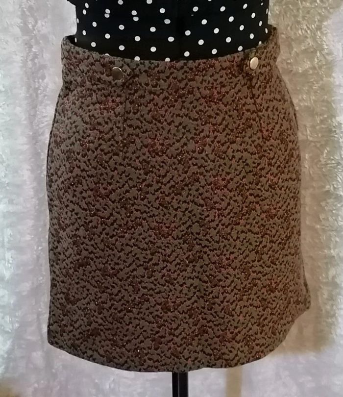 Superbe jupe courte style militaire chic Couleur vert kaki / orangé / cuivre Bouton doré à l'avant Tissus épais motif camouflage Fermeture éclair doré dans le dos Tissu et taille non élastique Taille 36 Matières : 44% Polyester 30% Coton 23% Acrylique 2% Autres fibres 1% Fibre métallisée Mesures à plat : Longueur : 42cm Taille : 35cm Hanches : 46cm 🌟 Jamais portée, neuve🌟 Superb chic military style short skirt Khaki /orange/ copper color Golden button at the front Thick fabrics camouflage pattern Golden zipper in the back Fabric and non-elastic waist Size 36 Materials: 44% Polyester 30% Cotton 23% Acrylic 2% Other fibers 1% Metallic fiber Flat measurements: Length: 42cm Size: 35cm Hips: 46cm 🌟 Never worn, new🌟 🎁🎁🎁 1 article offert par tranche de 5€ d'achat dans mon dressing. Pour 5€ d'achat => un article d'1€ offert Pour 10€ d'achat => 2€ offert (2 articles à 1€ ou 1 article à 2€) Pour 15€ d'achat =>3€ offert (3 articles à 1€ ou 1 article à 2€ + 1 à 1€ ou 1 article à 3€) Et ainsi de suite dans la limite de 3 articles cadeaux !!! 🎁🎁🎁 Vous n'avez qu'à ajouter les cadeaux dans votre commande, je ferai la reduction manuellement. 🎁🎁🎁 #jupedroite #jupecourte #jupenafnaf #camouflage #taches #nafnaf #doré #cuivre #femme #jupe #orange #couleurs #kaki #bizs33 #bizs33jupe #bizs33tailles #bizs33taille36 (P4N15)