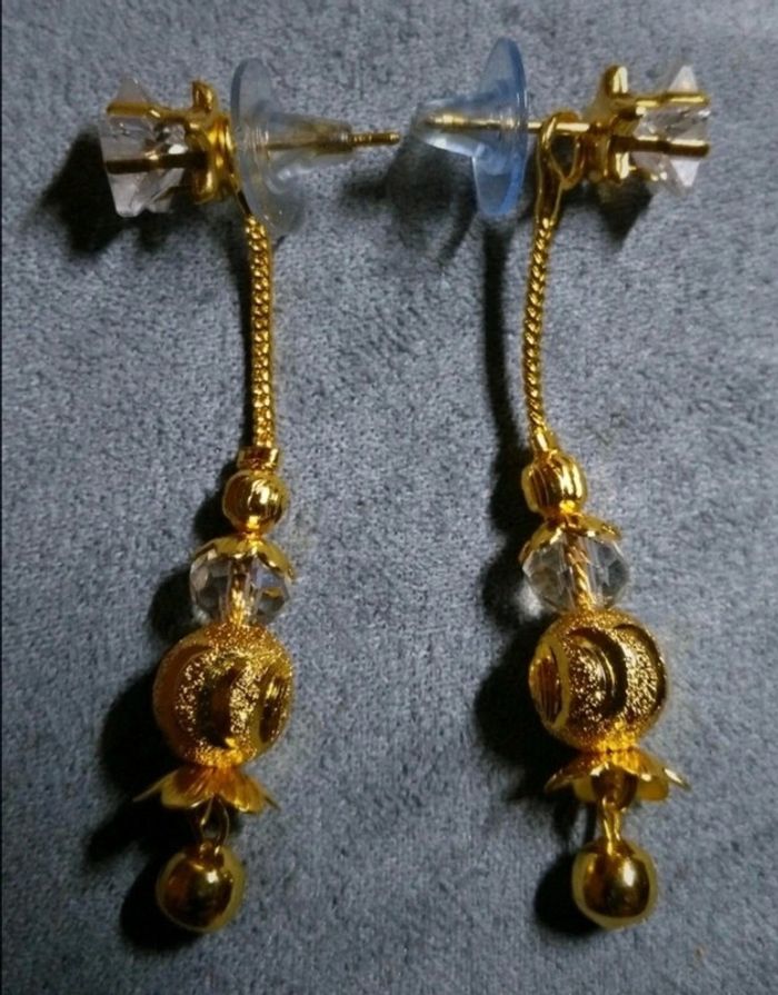 🌹Boucles d'oreilles étoile doré et perle de verre 🌹 - photo numéro 4
