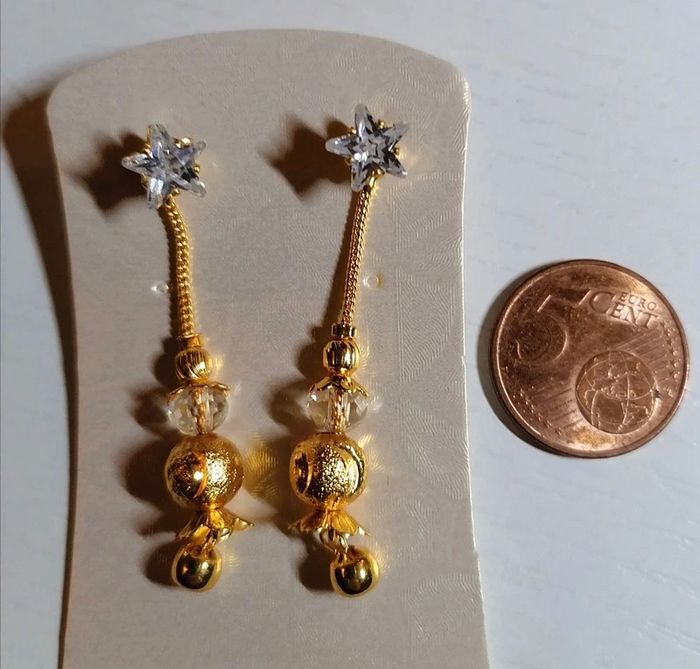 🌹Boucles d'oreilles étoile doré et perle de verre 🌹 - photo numéro 3