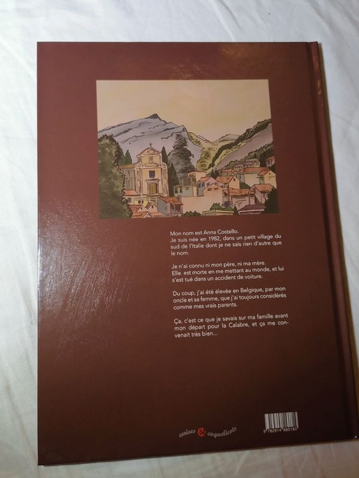 « Mon nom est Anna Costello. Je suis née en 1982, dans un petit village du sud de l'Italie dont je ne sais rien d'autre que le nom. Je n'ai connu ni mon père, ni ma mère. Elle est morte en me mettant au monde, et lui s'est tué dans un accident de voiture. Du coup, j'ai été élevée en Belgique, par mon oncle et sa femme, que j'ai toujours considérés comme mes vrais parents. Ça, c'est ce que je savais sur ma famille avant mon départ pour la Calabre, et finalement, ça me convenait très bien...» Editions Cerises & coquelicots Dimensions : 23cm x 32cm 48 pages Poids : 0.51kg 🌟 Neuf 🌟 💕 Faites une commande groupée pour économiser sur les frais de port et profiter des réductions sur les lots 💕 🎁 Un cadeau offert pour tout commande dans mon dressing 🎁 #bd #bande #dessinée #anna #faida #livre #livre #italie #calabre #histoire #famille #dessin #graphiste #art #illustration #illustré #bizs33 #bizs33loisirs #bizs33livre #vintedgift
