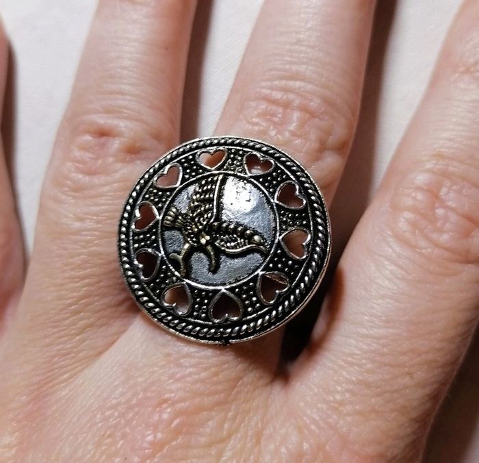 Bague ronde motifs cœurs et aigle 🦅 - photo numéro 1