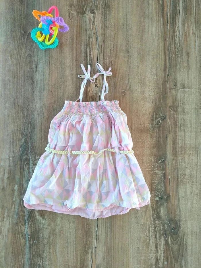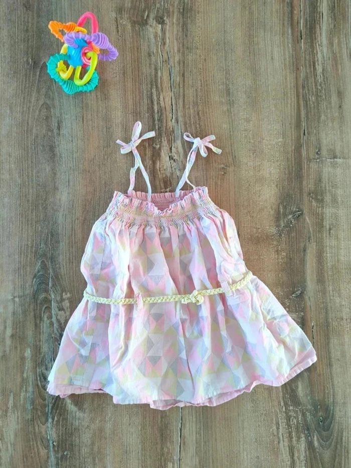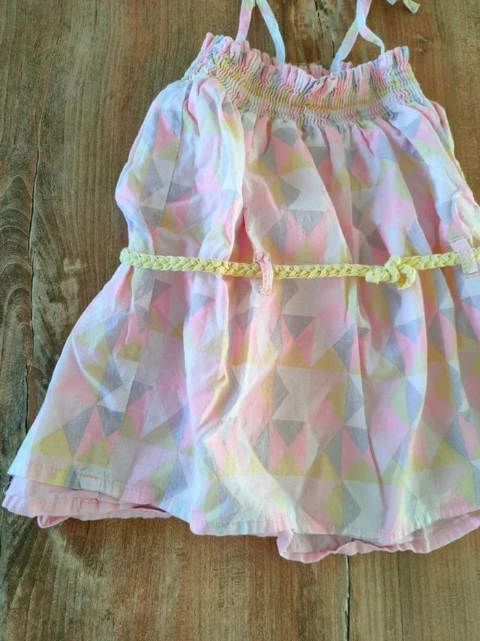Robe à bretelles Motifs triancles gris, roses et jaunes Doublée Vendue avec ceinture Sucre d'orge Très bon état #sarrado #sarradofille #sarradofille18mois #robebebefille18mois #robesucredorge18mois #robeabretelles #domloup #chateaugiron #rennes