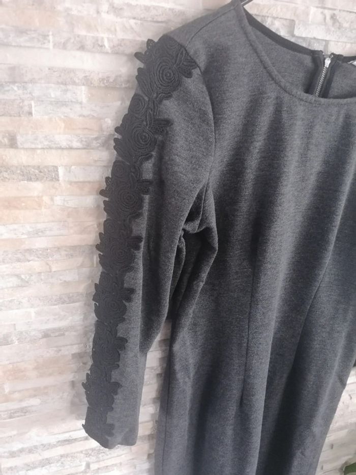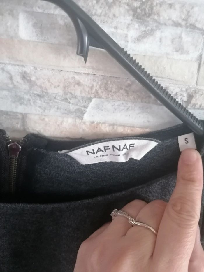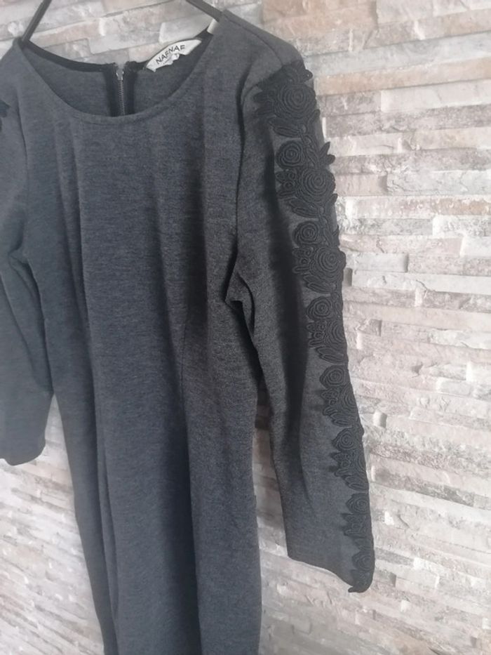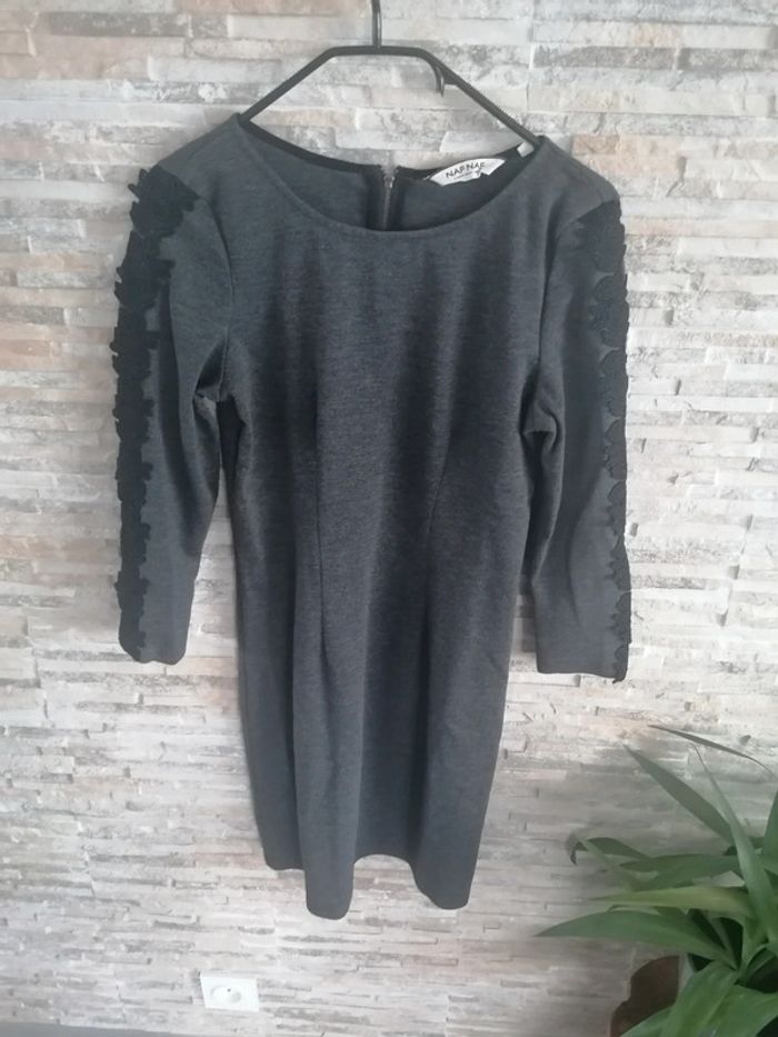 #Vêtements_femmes_krocaro Robe femme manches longues Gris/noir Brodée aux bras TAILLE S NAF NAF