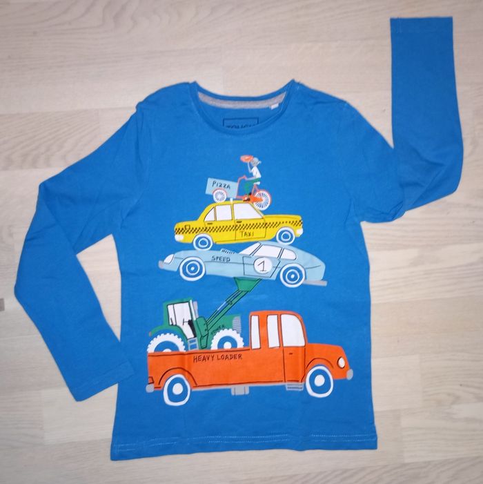 Tee-shirt bleu roi motif voitures américaines C&A T. 128 cm NEUF