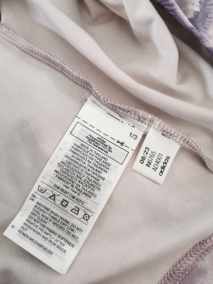 👕 ÉTAT DE L'ARTICLE: 10/10 ✅️ Avec étiquette🔖, jamais porté 📷 Photos portées du site disponibles en message privé 📷 Tee-shirt 👕 de sport 👩 Adidas Taille XL • Matière: 88% polyester - 12% elasthanne • Coupe courte slim • Manches courtes • Col rond • Découpe ✂️ dans le dos • Imprimé Tie&Die fleuri 💮💮💮 • Technologie Aeroready qui évacue la transpiration 💦 • Couleur: Mauve • 📏 Longueur: 55 cm • 📏 Mesure sous aisselles: 53 cm Parfait état👌, avec étiquette🏷️, jamais porté 📎