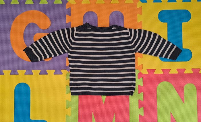 Pull marinière gris noir, kiabi, taille 12 mois (73/76 cm) - photo numéro 1