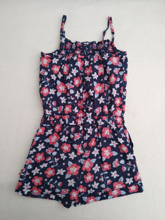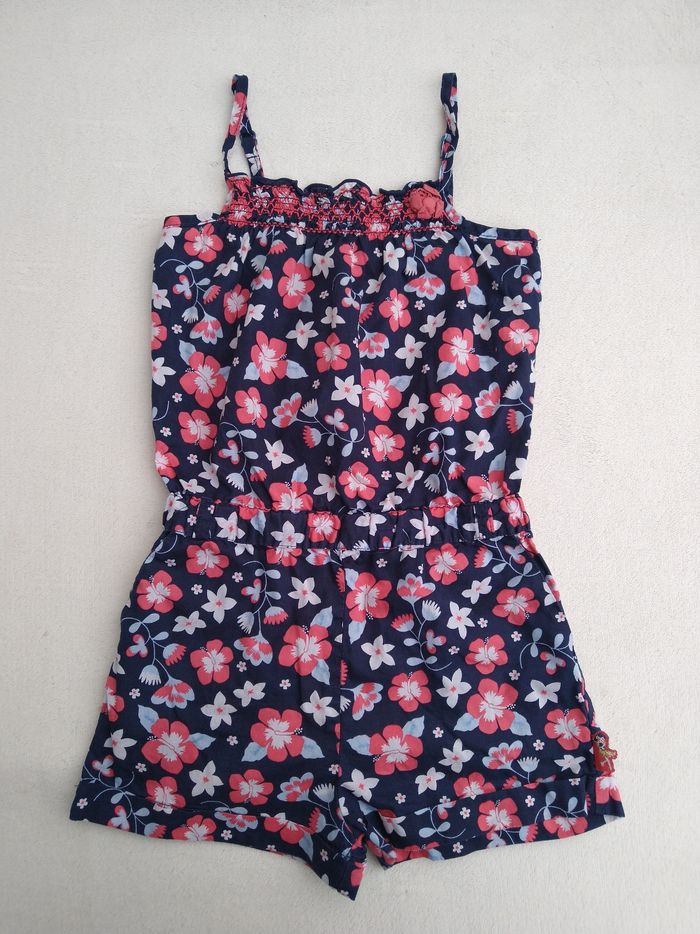 Combinaison short d'été à bretelles Marque Sergent Major Taille 4 ans, 104 cm • Coloris marine, rose, bleu • Imprimés fleurs • Haut, dos et taille élastique • 2 poches • Coton fin, léger En très bon état #evelyne_filles_4ans #evelyne_filles